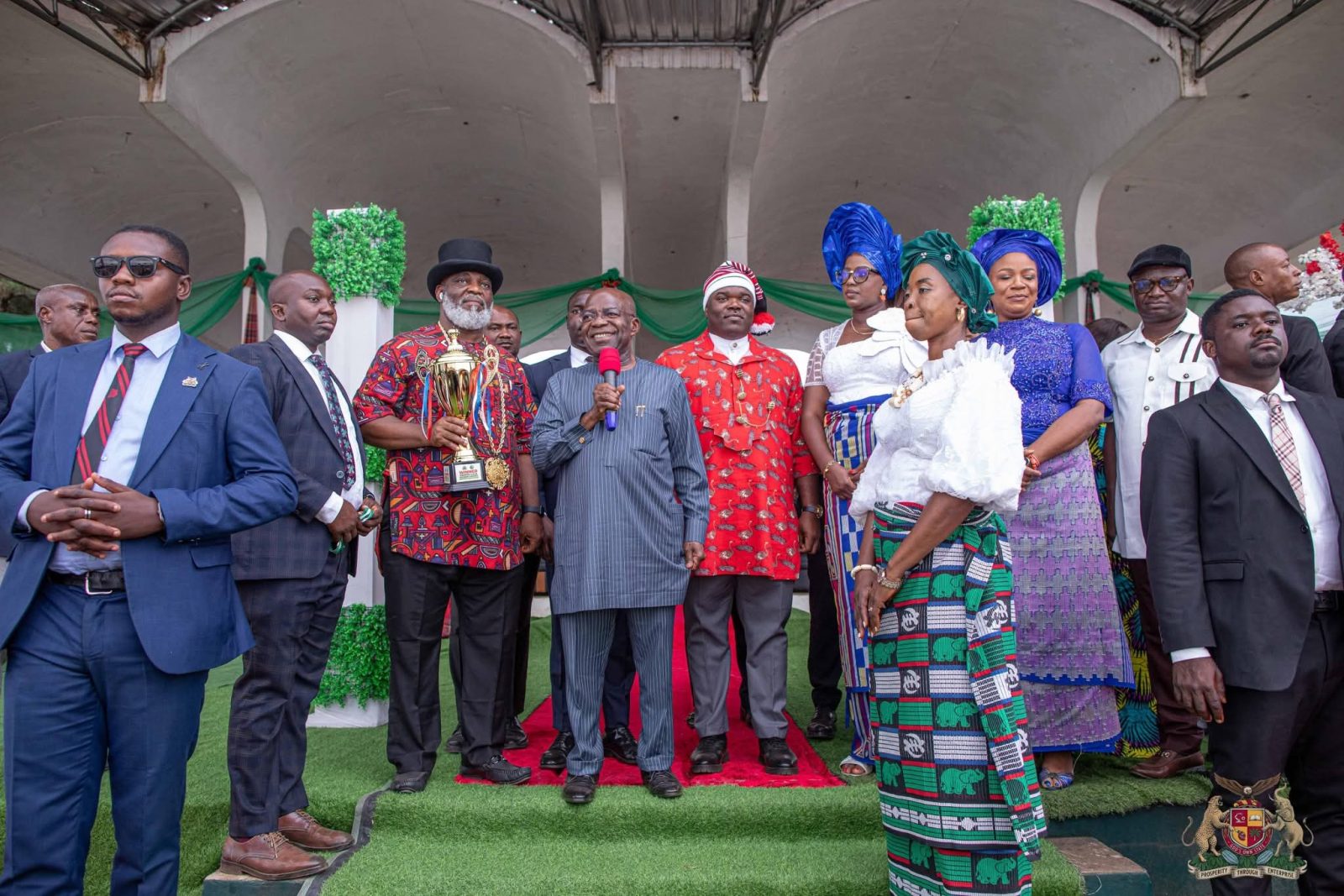 The Governor was warmly received by dignitaries present at the event, including Her Excellency, Mrs. Adaeze Chidera Emetu, wife of the Deputy Governor, and Ada-Ena Mrs. Grace Kalu Ojuu, wife of the Mayor of Ohafia LGA. Their presence added to the prestige and celebratory spirit of the occasion.