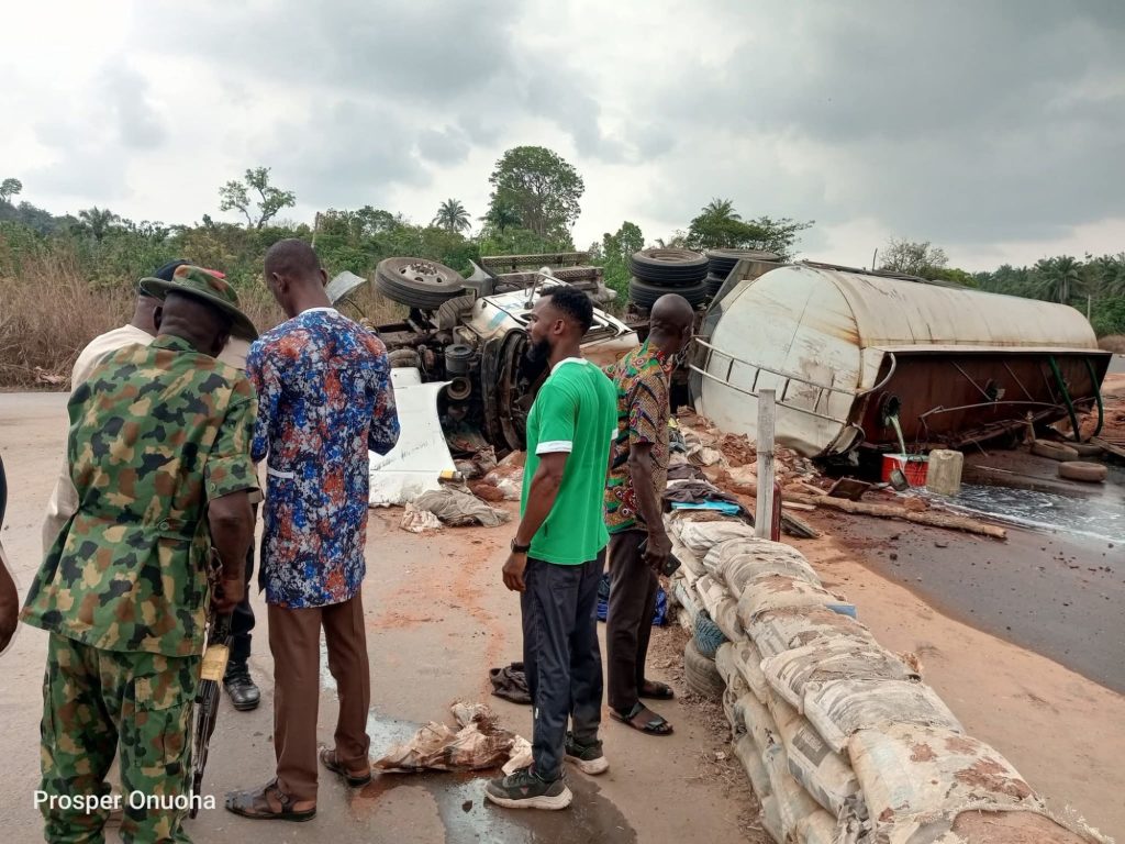 Ohafia Mayor Visits Nguzu Edda Junction After Diesel Tanker Crashes Into Army Checkpoint