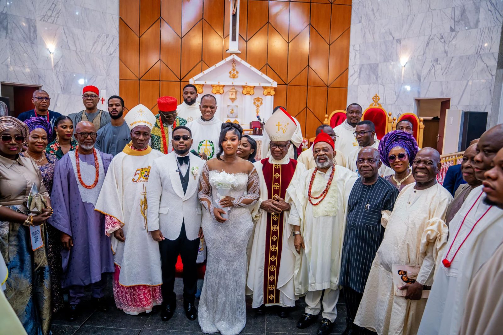 The joyous occasion marked the union of Dr. Raphael Ngige and his bride, Barrister Chetanna Agubata, in a solemn and elegant ceremony held at the Catholic Church of Assumption, located at 5 Kwame Nkrumah Crescent, Asokoro, Abuja.